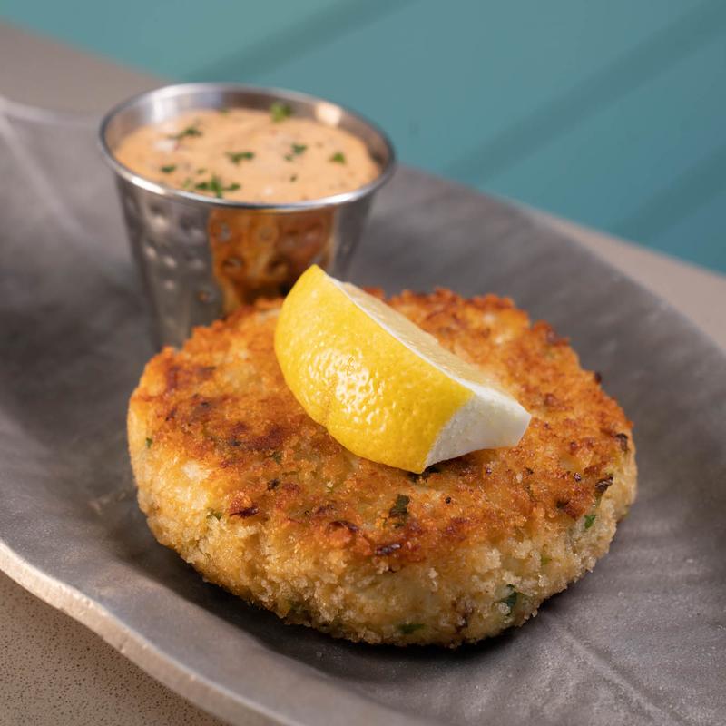 Homemade jumbo lump crab cake, pan-seared and served with remoulade